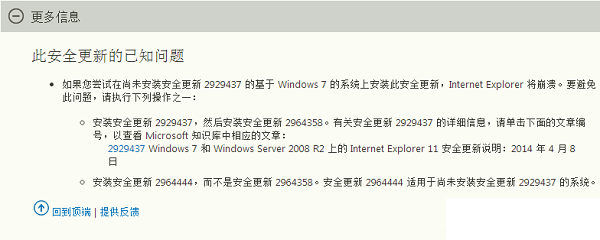 到官网http://support.microsoft.com/kb/2964358/zh-cn一看才发现是如此如此,在没安装2929437更新的,安装后会出现Internet Explorer崩溃。