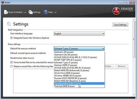 如果要删除移动硬盘中的文件,实际上也并不复杂,原理与上述方法类似,删除数据并覆盖之后,数据就相对安全了。类似的软件如“Eraser”,可以自动使用数据来覆盖删除文件,操作也非常方便。如果仍不放心,我们可以通过安装一些数据恢复软件,来测试一下文件是否被安全删除了。