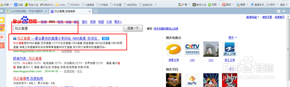 在浏览器中输入“中央电视台网络直播”,然后进入CCTV官网;如图: