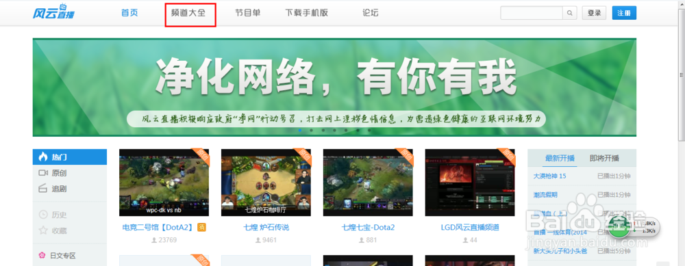 在浏览器中输入“风云直播”,进入风云直播的官网。
