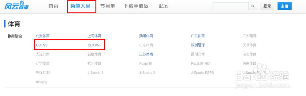在频道大全里,我们就可以很轻松的找到:cctv5、cctv5+;如图: