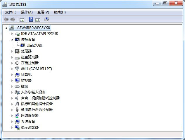 1、将u盘插入电脑usb插口,随后打开“控制面板”,双击“设备管理器”,在里面展开“便携设备”,便可以看见u盘。如下图所示: