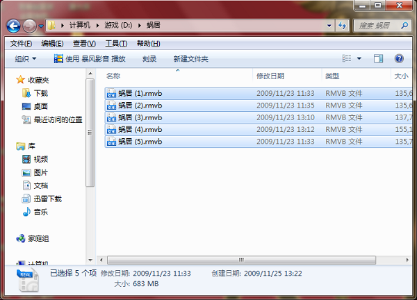 举例:批量重命名《蜗居》的前五集,打开《蜗居》文件夹后,Ctrl+A全选5个文件,按下F2,给第一个文件命名为“蜗居”,按回车键,这样,5个文件分别被重命名为“蜗居(1)….蜗居(5)”。