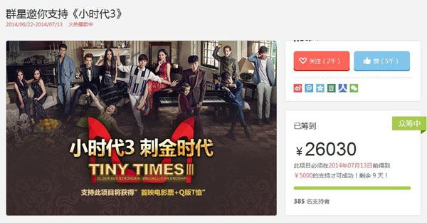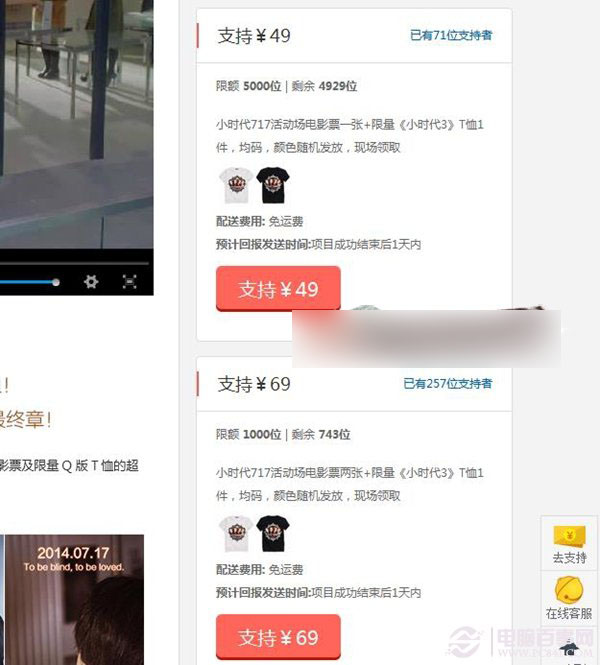 第三步:最后选择自己感兴趣打算支持的项目,比方小编选择的是《小时代3》
