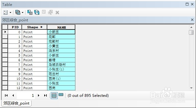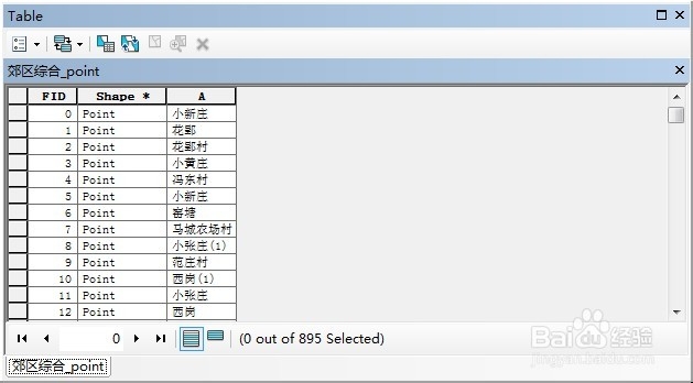 3、在ArcMap的左侧窗口中选择修改的属性表,右击选择"open",打开"Attributes of (属性表名)"。