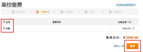 3、勾选缴费项目,点击【缴费】按钮;