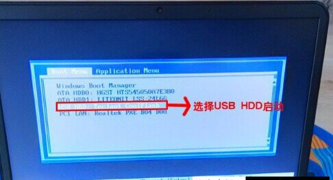 再选中“Exit Saving Changes项”回车,选Yes,我们就可保存设置重启笔记本电脑了,重新启动后请按F12进入您的引导设备选项“一般为您U盘的名字”(如下图)