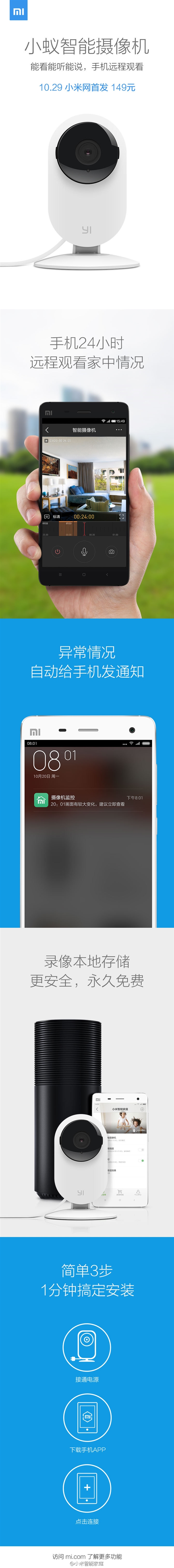 小蚁智能摄像机将于 10 月 29 日在小米网首发,官方并没有公布供货数量,难道是现货供应的节奏?