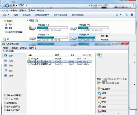 系统升级到Win7已有一段时间了,唯一不能适应的是Win7系统自带的搜索功能,感觉很不好用,不但搜索速度慢,而且没有XP中好用的右键菜单“搜索”命令。平时为了找一些文件,得费好多事才行。为了提高效率,她找到“光速搜索”这个小工具,让搜索无处不在,光速搞定。