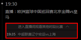A:如果某场比赛有同时直播的其他赛事,会在其节目单内并列显示,点击节目标题,可以进入直播间观看。