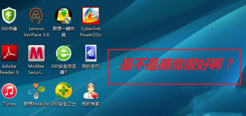 设置完以后,我们来看看效果吧,是不是把桌面图标上的小箭头去除了。希望这个教程对大家有所帮助!