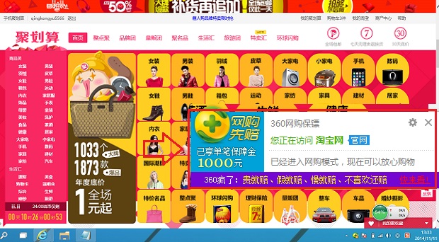 如上图,电脑中安装了360安全卫士后,在进入淘宝聚划算就会看到是官网提示,如果是钓鱼网站,一般都会有警告提示。从而可以让我们安心购物,金山卫士、电脑管家甚至百度卫士都有此功能,值得小白同学采纳。