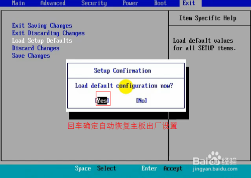 5、LOAS SETTING DEFAULTS装入系统BIOS设置的默认值。执行该菜单并确认后,BIOS所有设置的内容均变为出厂时的默认值,但这些默认值并不能完全发挥系统的性能,除非计算机不能正常启动或哦出现不稳