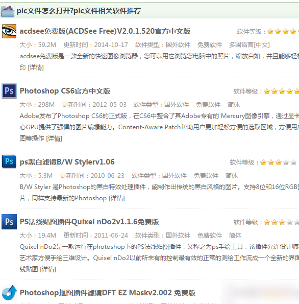 那么pic文件怎么打开呢?我们可以使用一些常见的图片浏览器(如ACDSee)或者是图片处理软件(Photoshop)都可以打开pic文件!