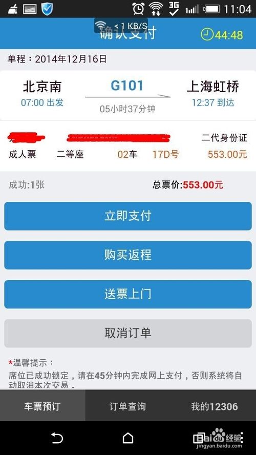 输入验证码,确认订单信,付款成功后将会收到12306的购票信息。指定日期去火车站取票即可。