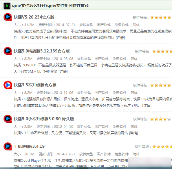 QMV格式文件就是快播自主开发的视频格式文件,具有比其他视频文件更小巧的特点,只能使用快播播放器才可以打开。很多朋友想知道怎样把用快播下载下来的QMV文件转换成其它格式播放,如rmvb,目前还没有这种转换器支持。下面小编整理出了各版本的支持QMV格式的快播播放器大全,需要的朋友快来下载吧!