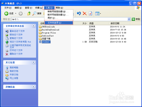 打开电脑文件夹,发现文件类型不见了(本来是student.txt)。
