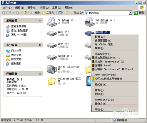 2、右击需要修复的分区,我是D 盘,所以我是右击D盘,弹出菜单
