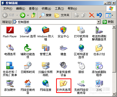 2、然后在控制面板中找到“文件夹选项”双击打开。