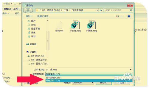 如下图 存档的时候选取--所有文件--我的是另存为--小黑兔.REG