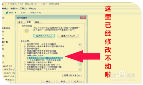 这是通过修改注册表的方式屏蔽了隐藏文件的显示功能 只要打开你电脑的人不修改注册表 是打不开你的隐藏文件的