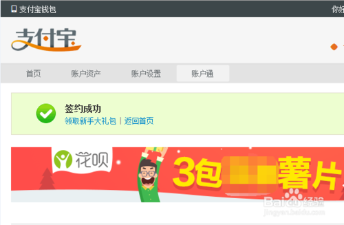 4、签约成功?原来这是第三方预付款来的,总算明白为什么可以先不给钱了。就这样开通了,怎么都觉得很简单似的。