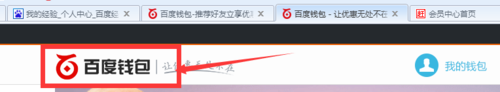 首先登陆自己的百度钱包,如果已经登陆找不到自己的个人首页请点击浏览器右上角的“百度钱包”字样