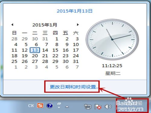 我们点击一下时间那个位置,看出如图的命令框,然后在点击“更改日期和时间设置”。