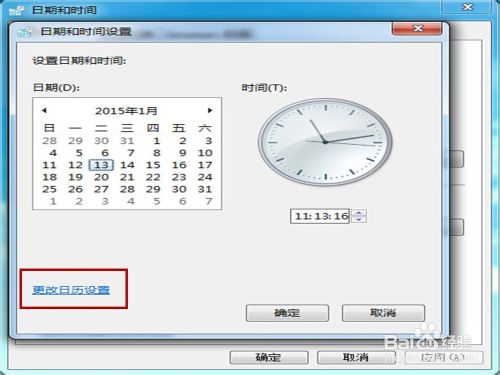 当“日期和时间设置”命令框打开后,点击“更改日历设置“。