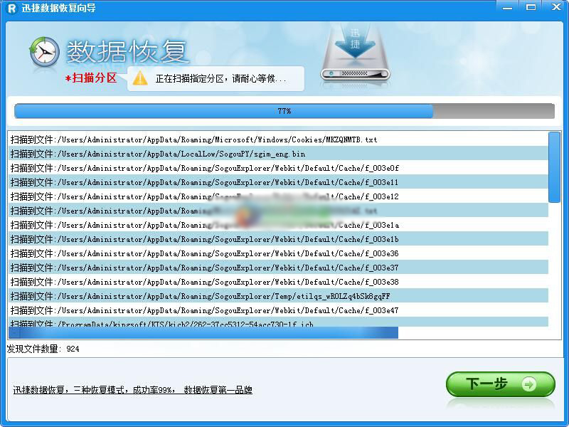 注意:恢复路径不能是丢失文件的分区,如C盘丢失文件则千万不能选择C盘为恢复路径!