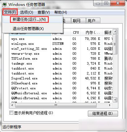 二、接着桌面就会消失。然后在继续打开任务管理器,选择“文件”然后选择“新建任务”。如下图所示