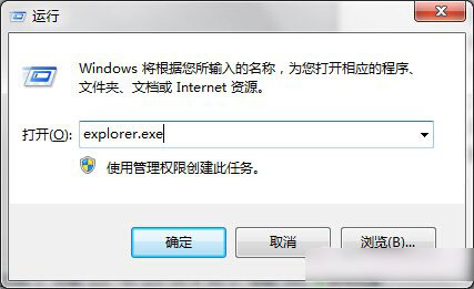 三、接下来在弹出的对话框中输入“explorer.exe”,点击确定,桌面就回来了。如下图所示: