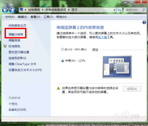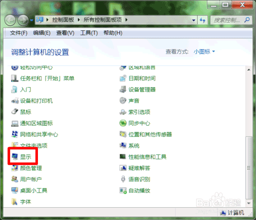 2、这时候就需要吧显示屏调正。在开始——控制面板——显示中调节。