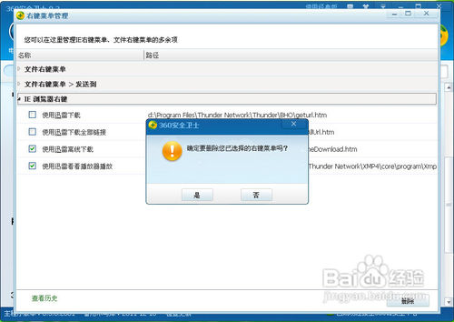 4、在你想删除的菜单的前面方框打勾,点击右下角的【删除】按钮。点击确定。