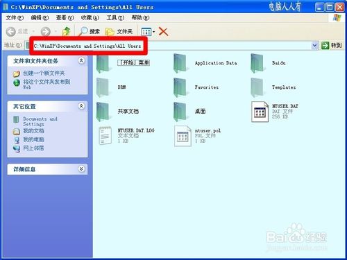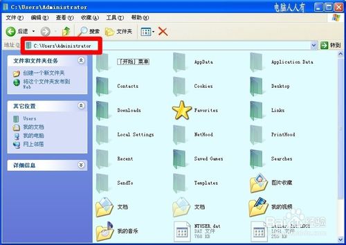 查看实际弹出的文件夹路径就会发现,这个路径不同于普通的系统路径,这是一个双系统共享C盘的多系统中的Windows XP 操作系统的路径。所以从运行中输入相对位置打开系统文件夹的好处就在此,直达目标文件夹。