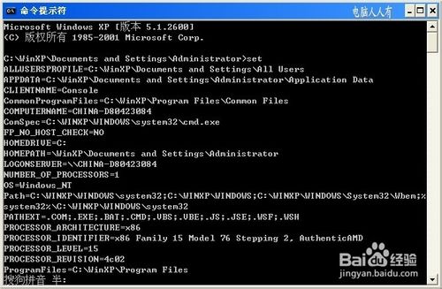 以上的文件夹路径还可以在命令提示符窗口输入命令(回车)查看:set
