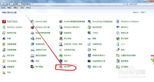 3、进入到控制面板页面,然后找到用户账户,点击进入。
