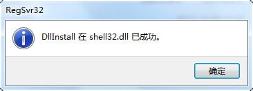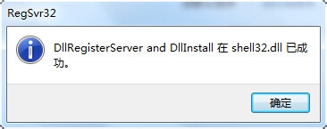 2、输入 regsvr32 /n /i:U shell32.dll ,然后点击确定,弹出一个提示框,表示成功