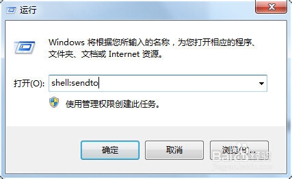 5、再次打开运行 输入 shell:sendto,然后点击确定,看 发送到 文件夹是不是已经恢复了!