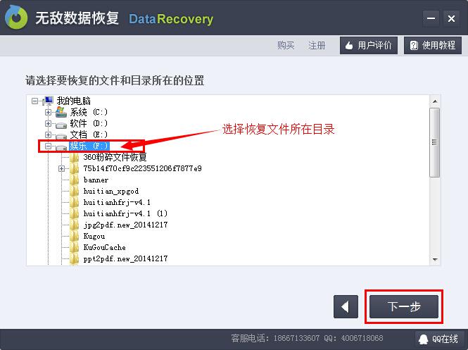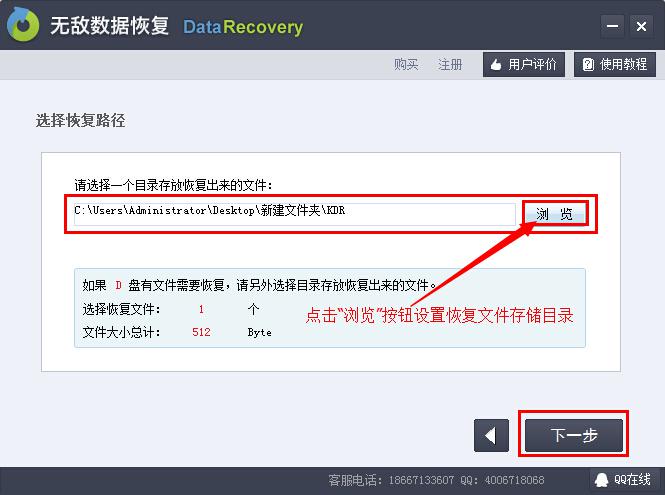 第五步:选择一个盘存放需要恢复出来的文件,然后单击下一步。等待片刻即可恢复完成。