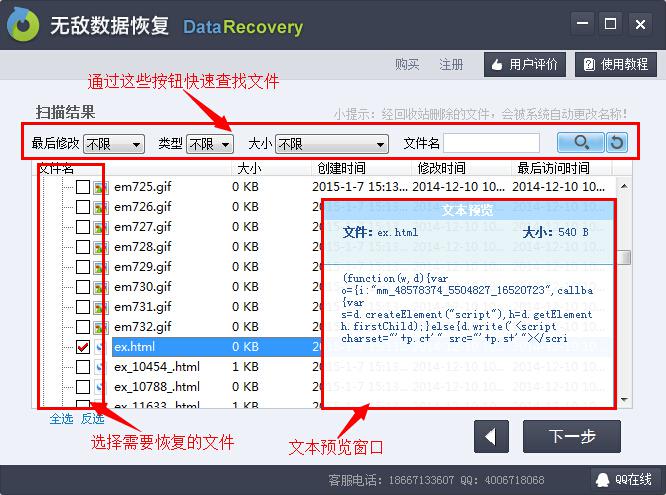 注意文件丢失后,文件名称也会被系统自动更改名称。如果未扫描到需要的文件,请使用“万能恢复”模式再扫描次。