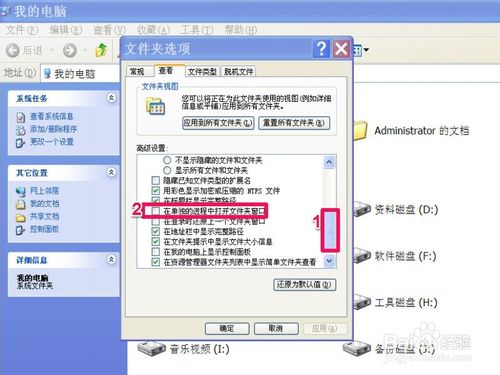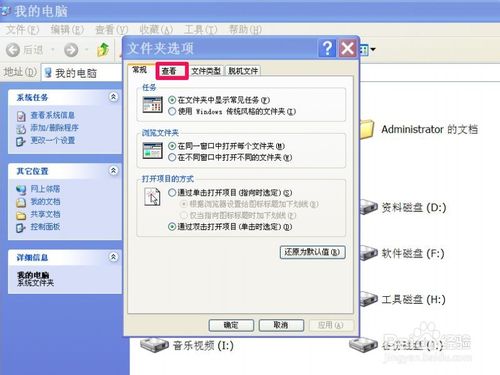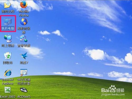 1,要进行此项设置,必须进入“文件夹选项”,进入方法,桌面“我的电脑”双击。