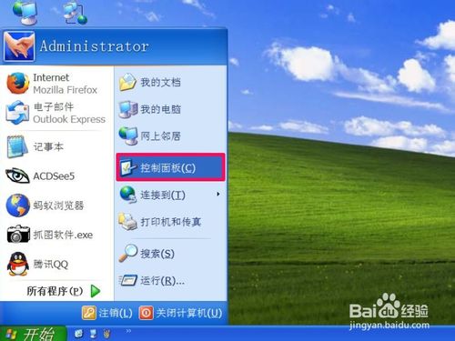 3,另一个打开方法是,在开始菜单中,打开“控制面板”程序。