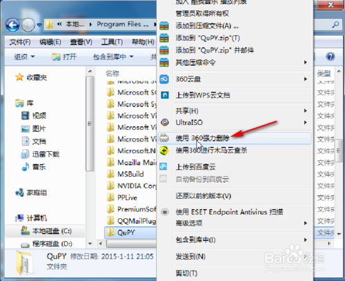 10、注意:由于该软件正在运行,因此不能直接删除它的文件,小编是用360强力删除的。如果读者朋友电脑上没有360,可以安装一下!