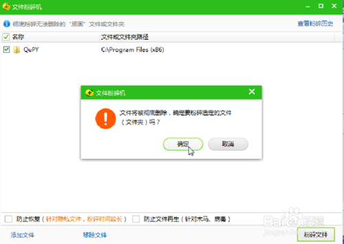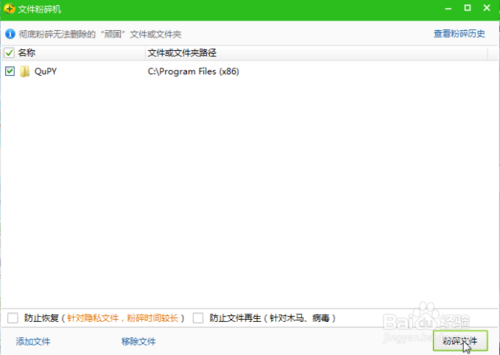 8、我们点击“粉碎文件”,如下: