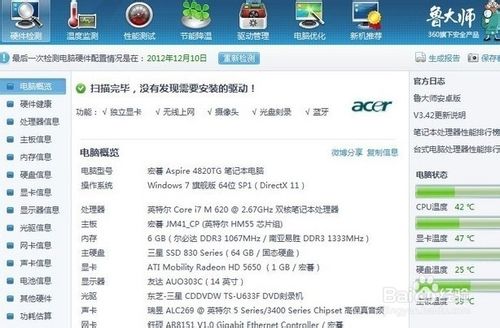2、桌面右击----“属性”---“设置”---“适配器”,可以查看电脑的显卡的配置。下载一个鲁大师软件,打开可以看到电及配置。这个很简单
