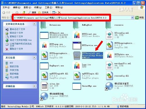 4、看好程序所在的相关路径,然后点击其中的卸载程序,比如B5TUninstall.exe之类的。