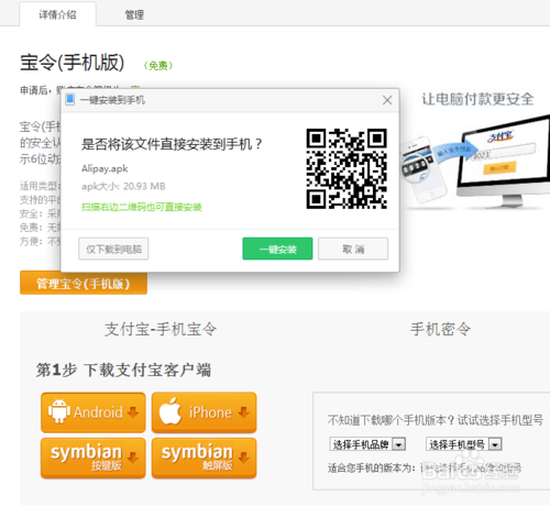 4、根据自己手机的类型选择手机宝令版本,下载并安装到手机上