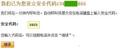 按电话里的提示,在座机或手机上输入安全代码,非常方便