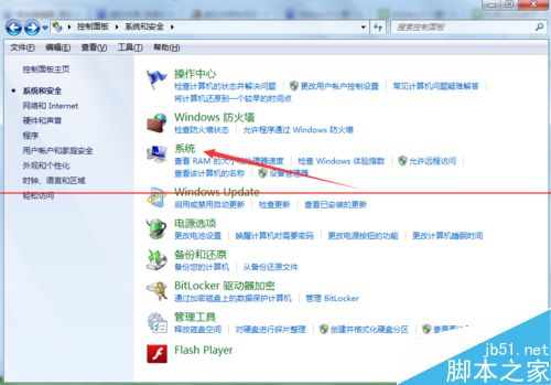 3、进入系统和安全详细界面,点击下方列表中的系统选项,